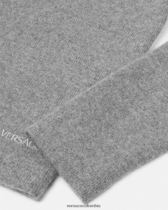 Este suéter de cuello redondo está confeccionado en cachemira y presenta un motivo de punto de greca tonal que enmarca los hombros raglán. Los ribetes acanalados y el logo bordado completan este estilo flexible.