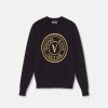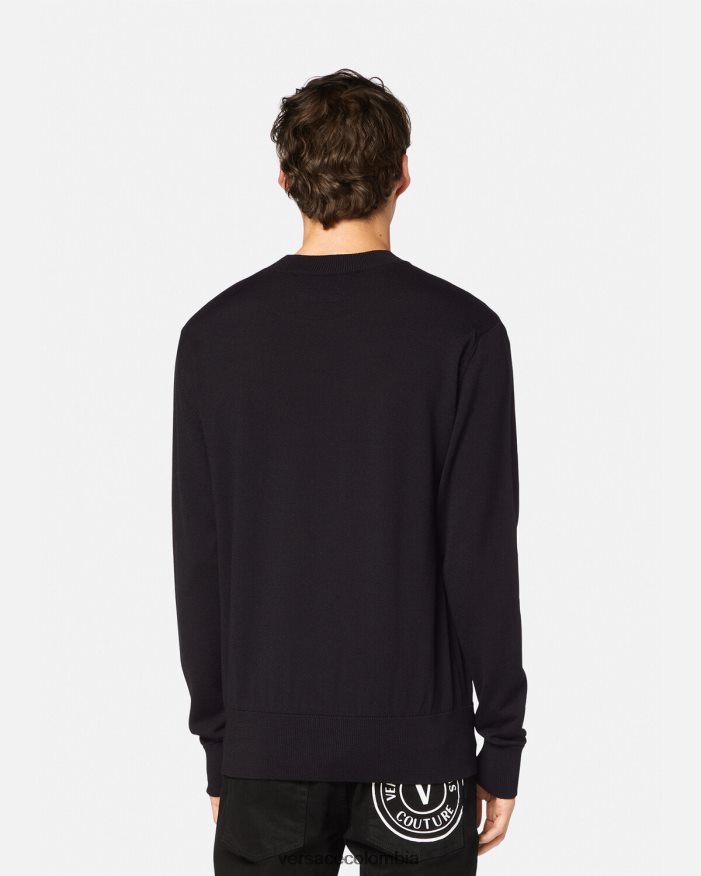 Este jersey de manga larga, confeccionado en pura lana, presenta el motivo del emblema en V en la parte delantera.
