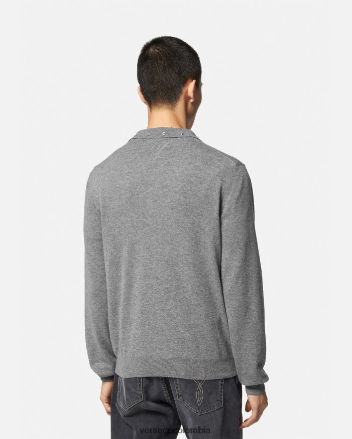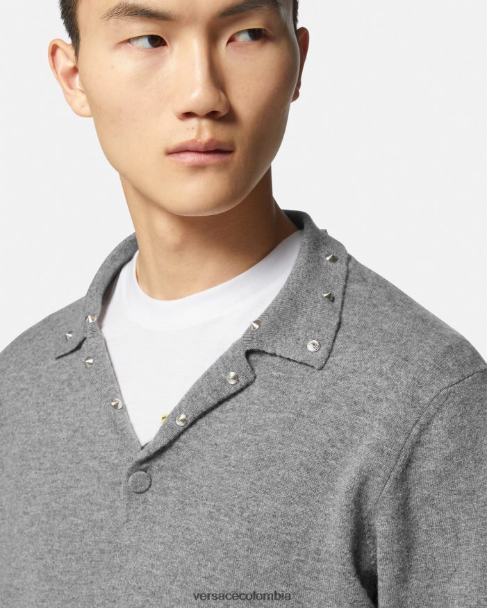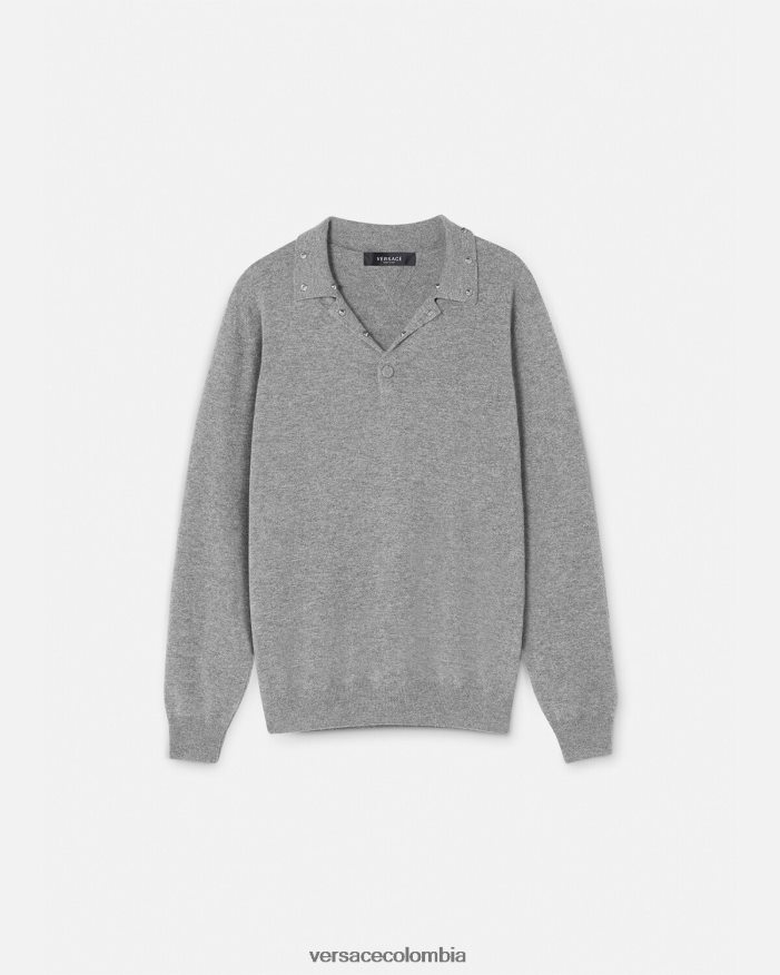 Confeccionado con una suave mezcla de lana y cachemir en una silueta relajada, este polo de manga larga presenta tachuelas metálicas en espiral extraídas de los archivos para darle un toque característico de Versace.