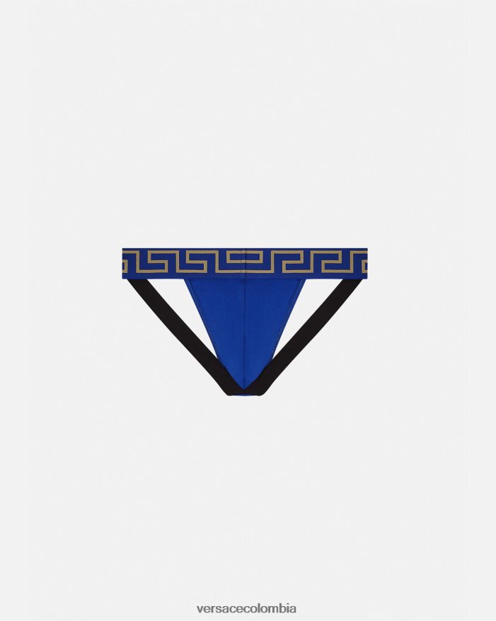 suspensorio de algodón elástico, con el icónico patrón de greca en una cinturilla elástica.