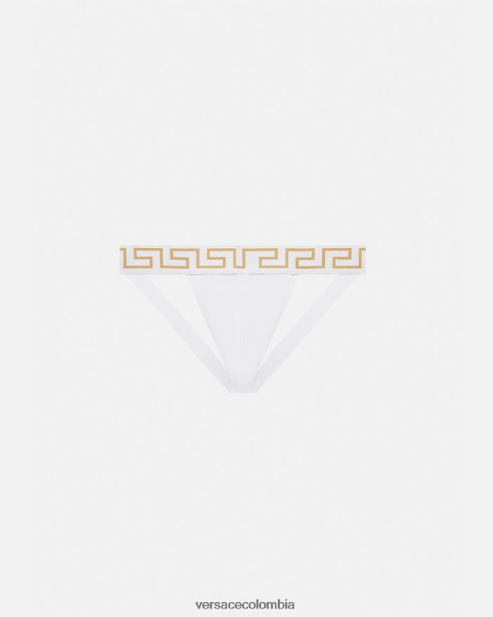 suspensorio de algodón elástico, con el icónico patrón de greca en una cinturilla elástica.