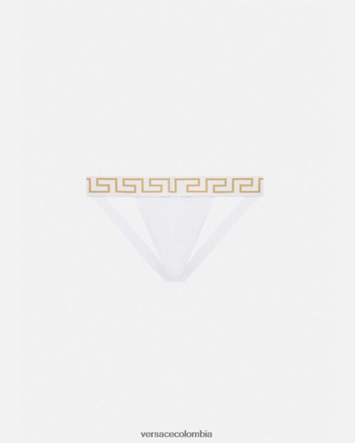 suspensorio de algodón elástico, con el icónico patrón de greca en una cinturilla elástica.