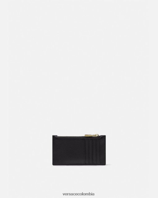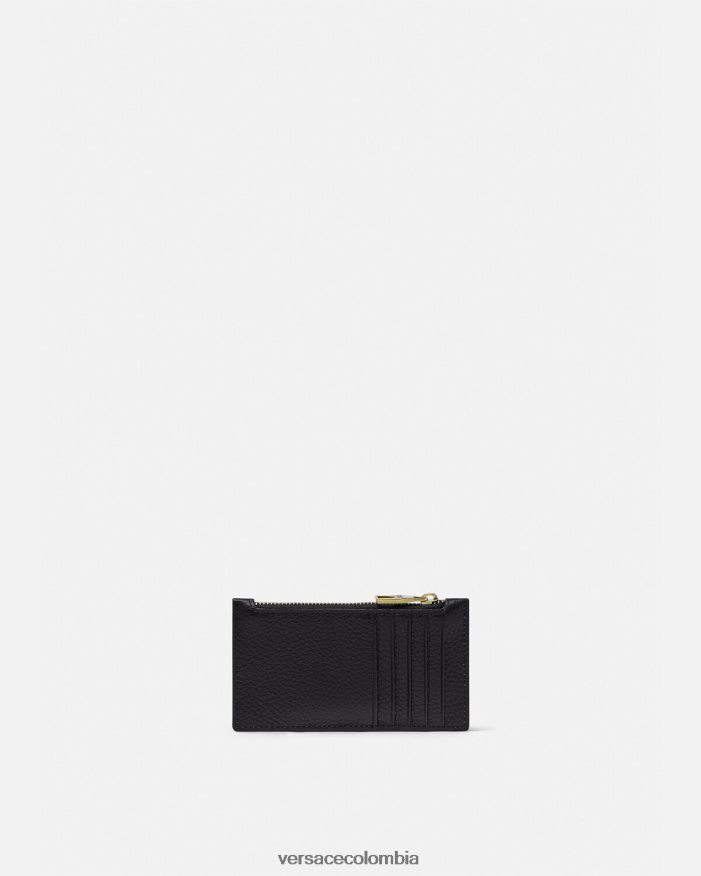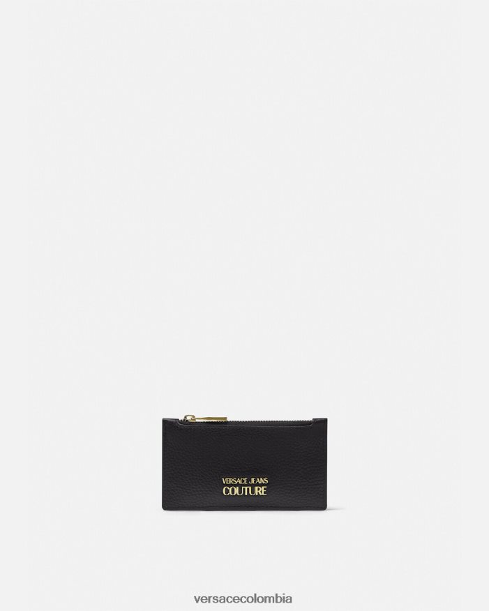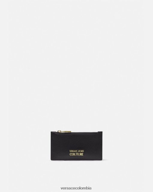 un tarjetero de cuero con cierre superior con cremallera y detalles metálicos con logotipo, que añade sin esfuerzo la actitud de alta costura de Versace Jeans.