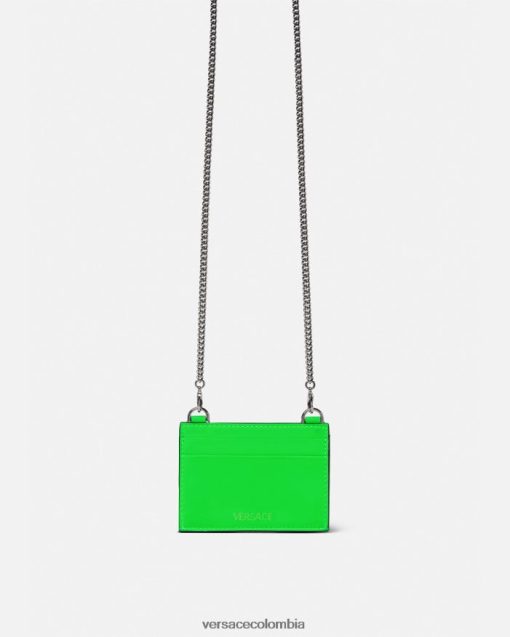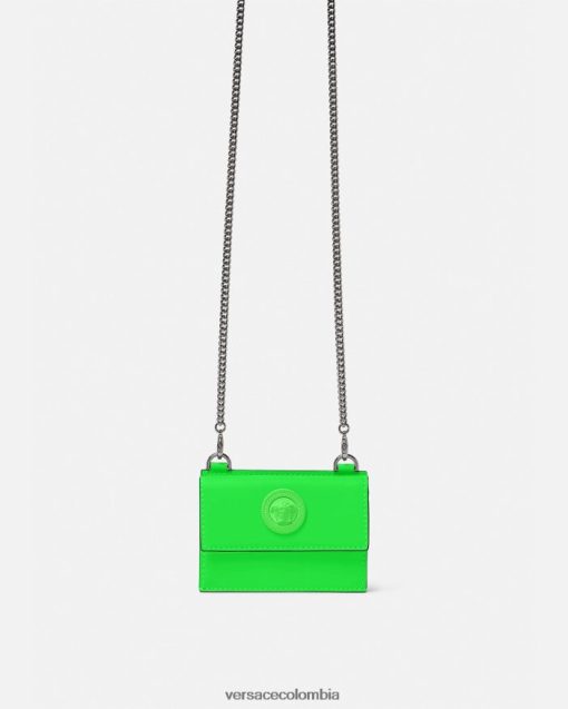 Este tarjetero está confeccionado con un acabado de goma suave y presenta una interpretación tonal del hardware de Medusa Biggie. Este pequeño accesorio también se puede llevar como cordón gracias a la cadena desmontable.