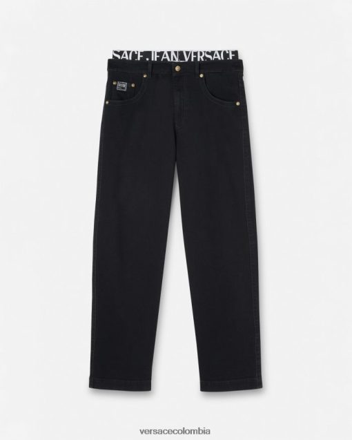 hombres vaqueros con logo en la cinturilla Versace negro 2RP40F2365 ropa