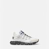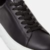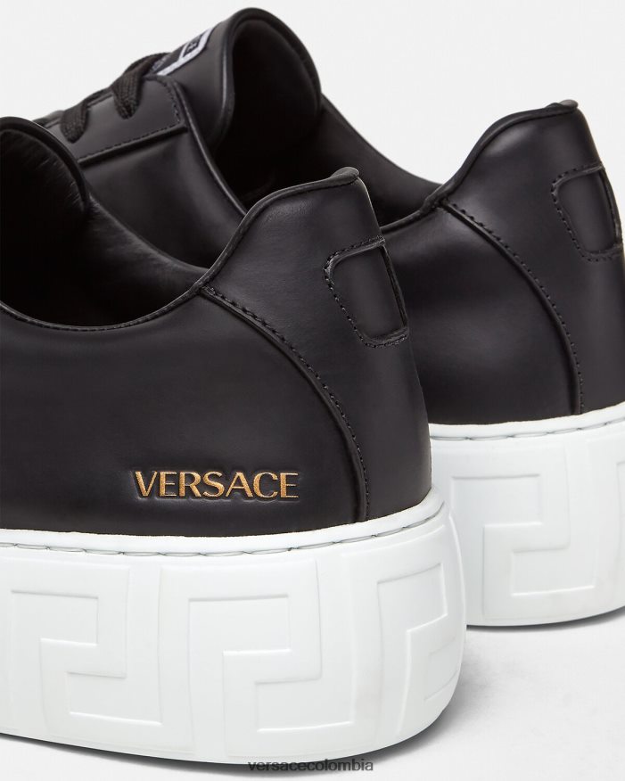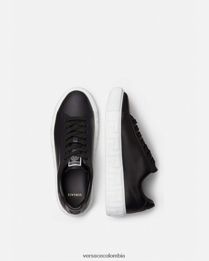 La silueta de caña baja se caracteriza por un patrón de greca grabado en suelas de goma vulcanizada y parte superior de cuero. un logo bordado en el costado del talón acentúa el estilo con cordones.