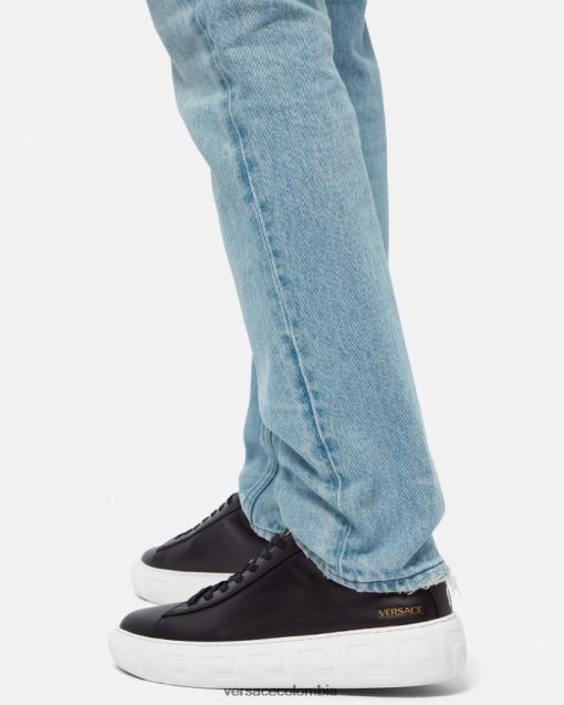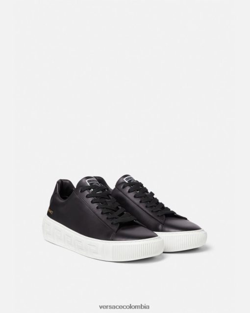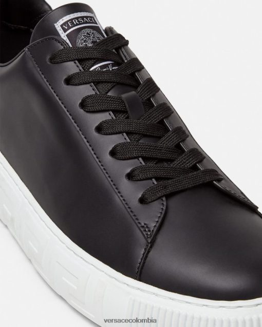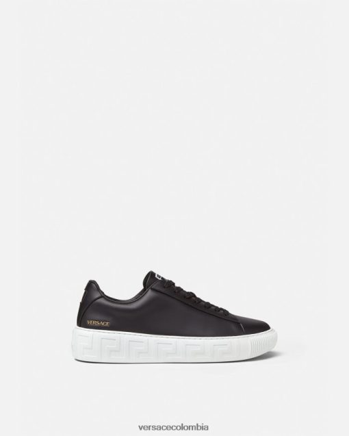 La silueta de caña baja se caracteriza por un patrón de greca grabado en suelas de goma vulcanizada y parte superior de cuero. un logo bordado en el costado del talón acentúa el estilo con cordones.