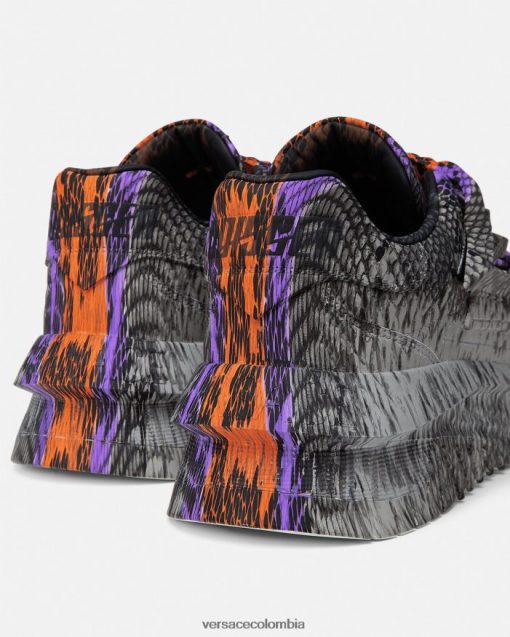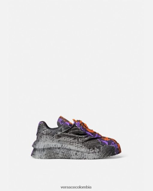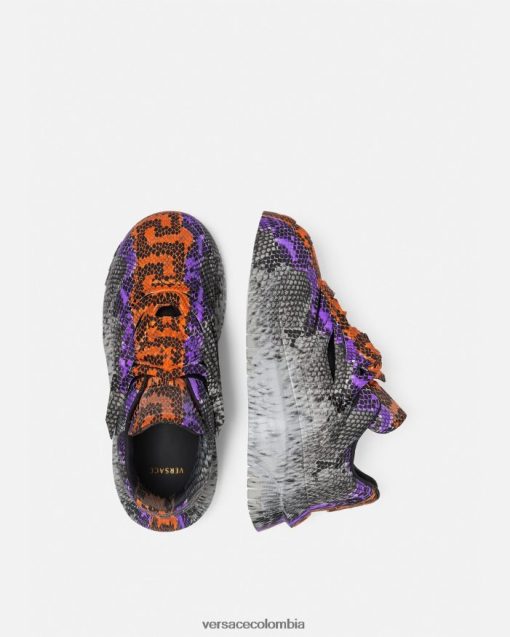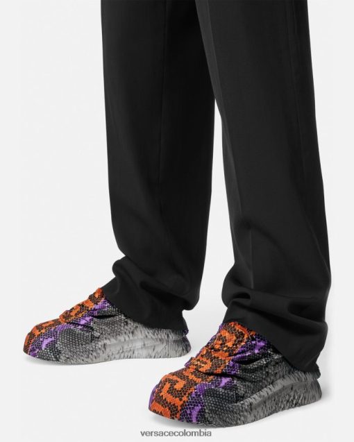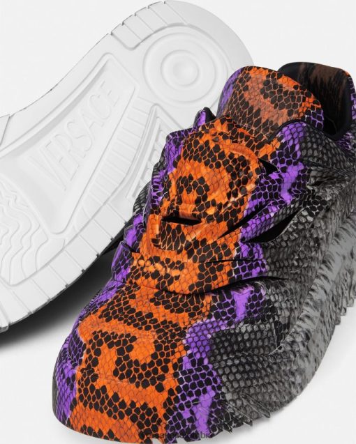 Con un diseño futurista y dinámico, estas zapatillas ligeras sin cordones tienen suelas de goma con puntera perforada. En el estampado Greca de pitón, aparece una medusa de goma en la parte superior para crear un efecto tridimensional.