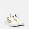hombres zapatillas speedtrack de alta costura con logo Versace oro y blanco 2RP40F2459 zapato
