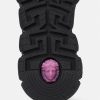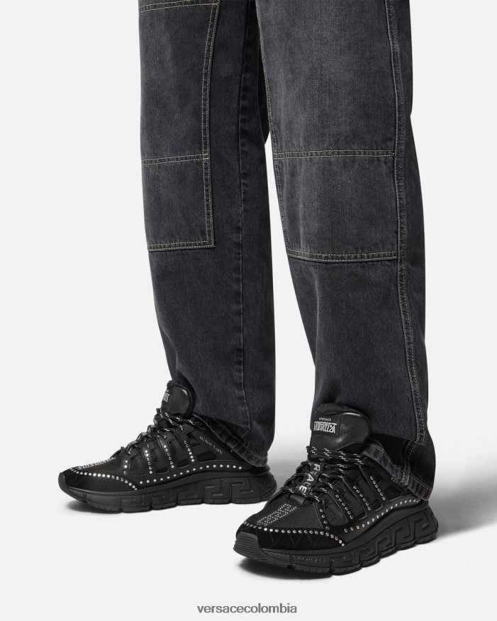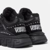 Las zapatillas Trigreca aportan innovación a la estética en constante evolución de la marca. Con un diseño tonal con detalles de tachuelas, las ejecuciones tridimensionales de greca en las suelas ofrecen un aterrizaje impactante con el “sistema de amortiguación greca”. En un sutil guiño a la ciudad natal de Versace, la parte superior tiene una discreta impresión de las coordenadas de Milán.