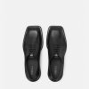 Confeccionados en cuero, estos zapatos derby con cordones cuentan con una puntera cuadrada cincelada y están detallados con un adorno de medusa cuadrado en la lengüeta. Están asentados sobre tacones apilados de cuero.