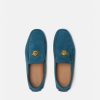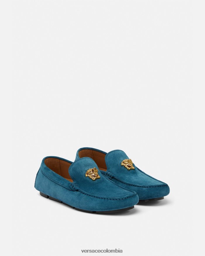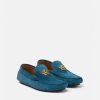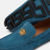 Estos mocasines de ante, con un diseño sin cordones, están realzados por el emblema de la Medusa en la parte superior y están asentados sobre suelas de goma.