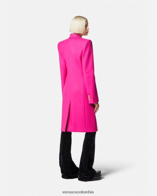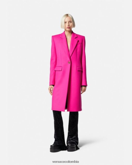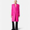 Confeccionado en lana virgen con una construcción totalmente forrada, este abrigo Versace entallado tiene un cuello afilado con muescas y bolsillos laterales con solapa. Los botones Medusa acentúan el cierre de botonadura sencilla y los puños.