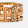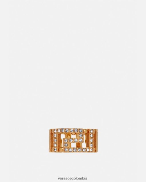 Anillo con diseño de greca y adornos de cristal. Todos los artículos de joyería de Versace no contienen plomo ni níquel.
