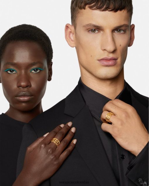 Anillo dorado con diseño de greca. Todos los productos de joyería de Versace no contienen plomo ni níquel. Todos los productos son hipoalergénicos.