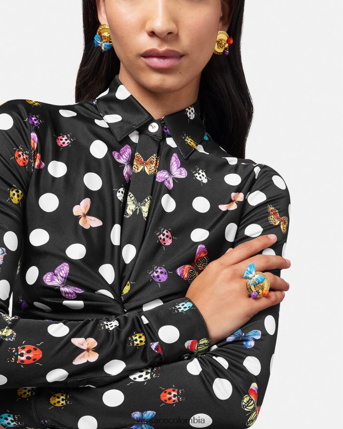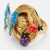versace presenta dua lipa x versace, una colección cápsula codiseñada con dua lipa. Este anillo con medallón presenta una medusa central enmarcada por un grabado de greca. el diseño está adornado con una mariposa esmaltada y mariquitas. Cada pieza es única y puede variar ligeramente de la imagen mostrada debido a su calidad aplicada y pintada a mano. Todos los productos de joyería de Versace no contienen plomo ni níquel. Todos los materiales son hipoalergénicos.