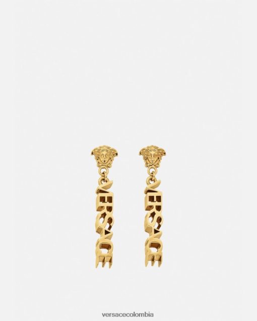 Estos aretes colgantes, un accesorio elegante, cuentan con pequeñas tachuelas de La Medusa y colgantes largos con letras con el logotipo de Versace. Todos los productos de joyería de Versace no contienen plomo ni níquel. Todos los materiales son hipoalergénicos.