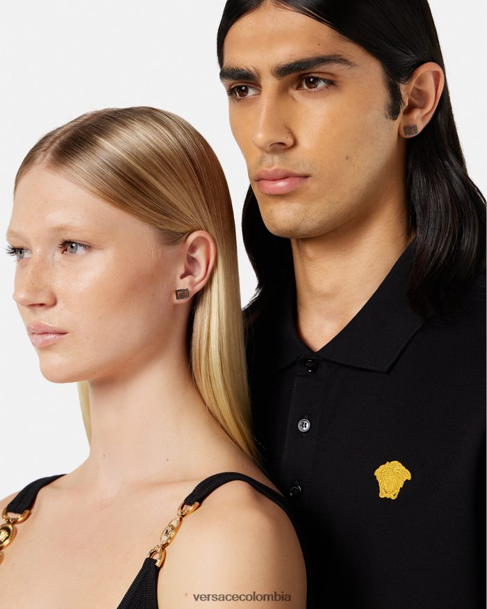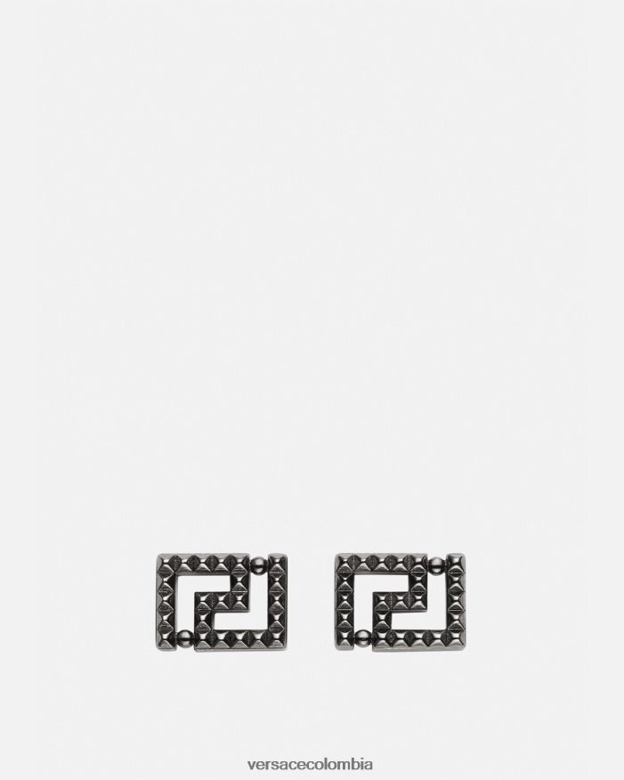 Este par de aretes de greca presentan un diseño con tachuelas y cierre de mariposa. Ninguno de los productos de joyería de Versace contiene plomo ni níquel. Todos los materiales son hipoalergénicos.