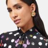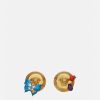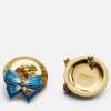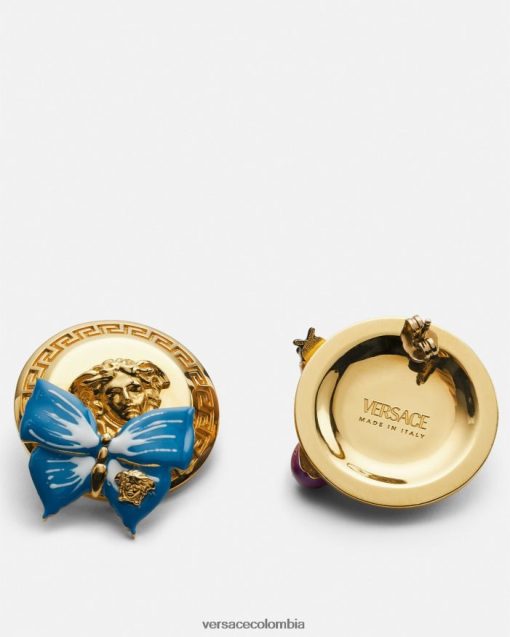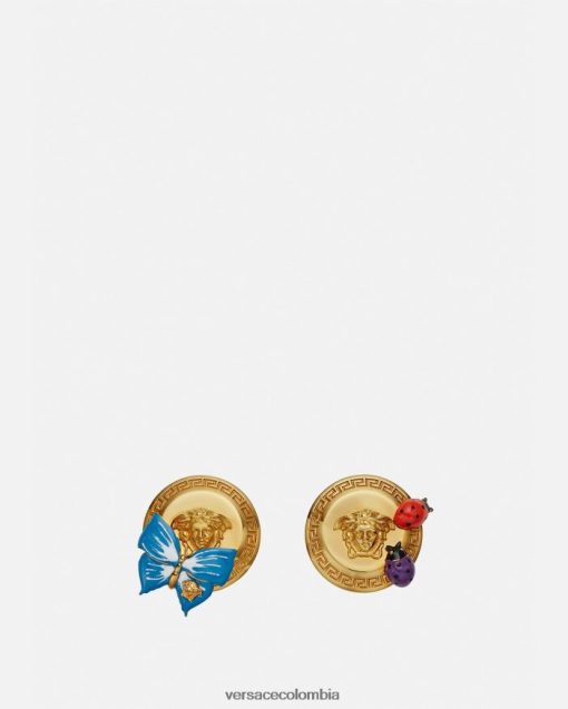 versace presenta dua lipa x versace, una colección cápsula codiseñada con dua lipa. Estos aretes a juego presentan un emblema central de medusa con grabados de greca, acentuados por una mariposa y mariquitas en lados alternos. Cada pieza es única y puede variar ligeramente de la imagen mostrada debido a su calidad aplicada y pintada a mano. Todos los productos de joyería de Versace no contienen plomo ni níquel. Todos los materiales son hipoalergénicos.