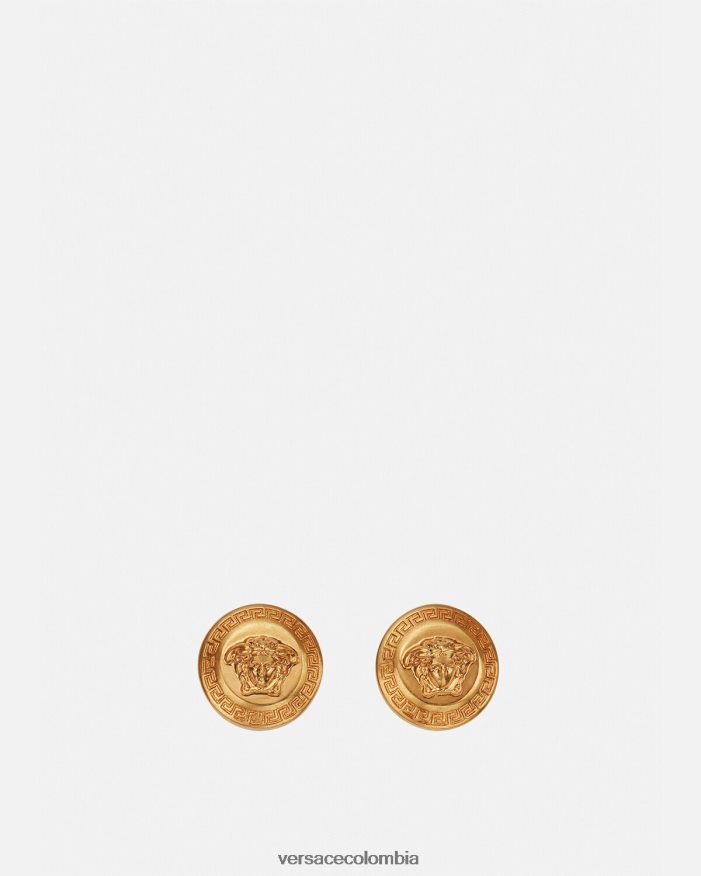 Estos aretes, un estilo icónico, cuentan con un motivo de medusa tradicional rodeado por una greca grabada. esta pieza tiene una calidad de color con efecto vintage. Todos los artículos joya de Versace no contienen plomo ni níquel. Todos los materiales son hipoalergénicos.