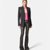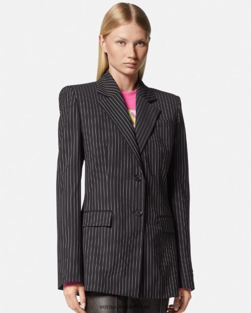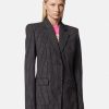 Hombros afilados y entallados aparecen en este blazer de botonadura sencilla con elegantes rayas diplomáticas y una impecable solapa con muesca para una silueta poderosa.
