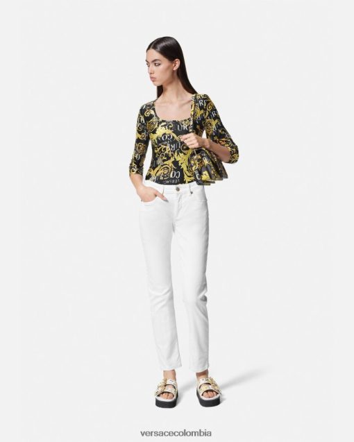 Este body elástico de manga larga presenta un logotipo de alta costura estampado por toda la prenda.