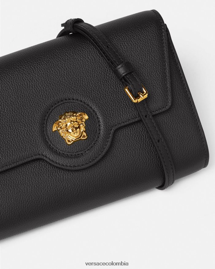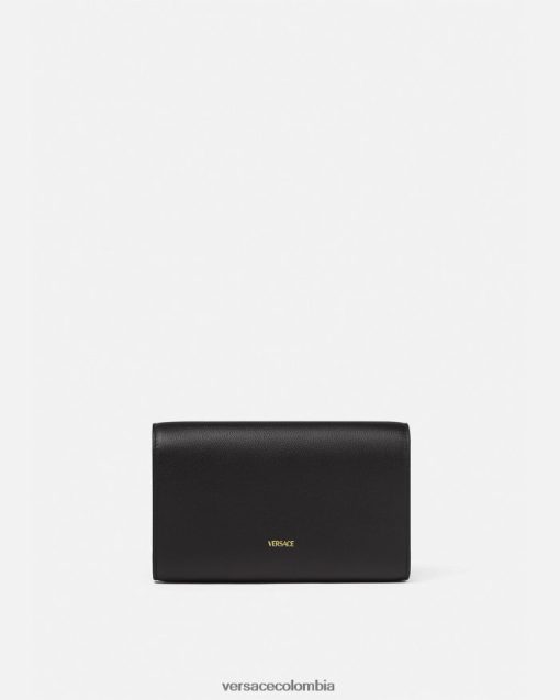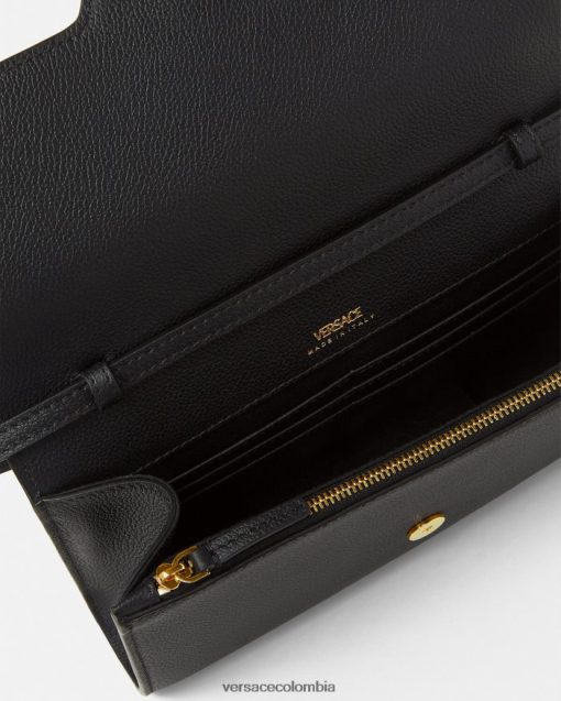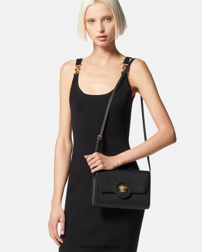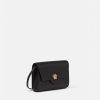 Este bolso cruzado con un diseño versátil está confeccionado en Italia con piel de becerro ligeramente granulada. El estilo contemporáneo está adornado con una placa tridimensional de Medusa, la misma decoración que se encuentra en las puertas de la villa milanesa de Versace.