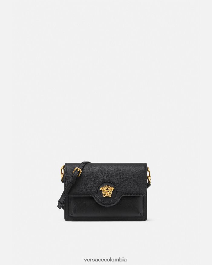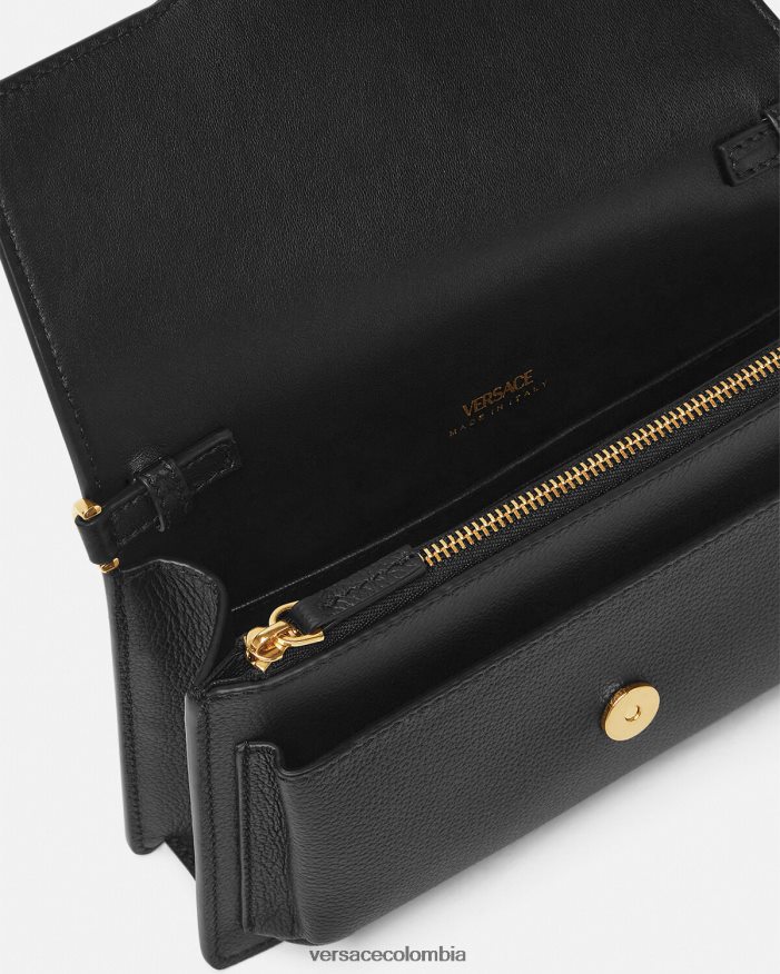 Este pequeño bolso bandolera, confeccionado en piel ligeramente granulada, está adornado con una placa central de Medusa y cuenta con un bolsillo frontal adicional. El estilo cruzado se puede llevar en la mano gracias a la correa de cuero ajustable y desmontable.