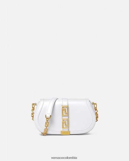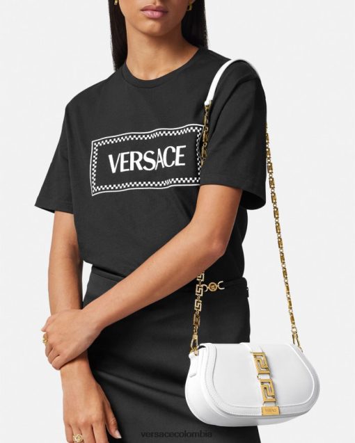 Aprovechando la reverencia de versace por el mito y la cultura, la línea de la diosa greca se caracteriza por la cadena central con greca y la correa de cadena desmontable. Elaborado en Italia con cuero liso, cuenta con un interior espacioso con un compartimento adicional. una correa de cuero intercambiable se puede ajustar para llevarlo al hombro, cruzado o en la mano.