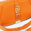 Aprovechando la reverencia de versace por el mito y la cultura, la línea de la diosa greca se caracteriza por la cadena central con greca y la correa de cadena desmontable. Elaborado en Italia con cuero liso, cuenta con un interior espacioso con un compartimento adicional. una correa de cuero intercambiable se puede ajustar para llevarlo al hombro, cruzado o en la mano.