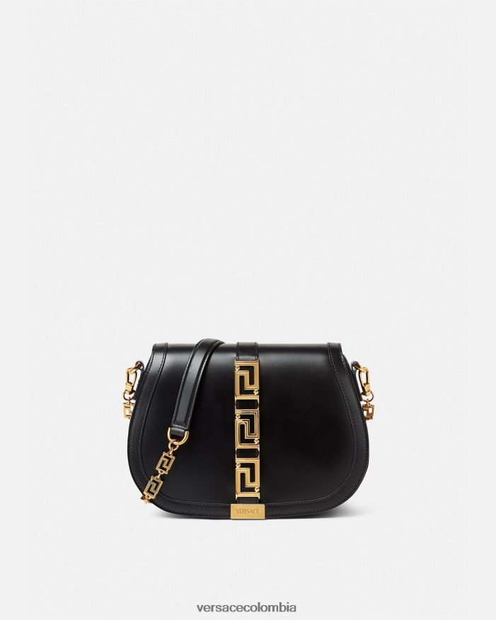 Aprovechando la reverencia de versace por el mito y la cultura, la línea de la diosa greca se caracteriza por la cadena central con greca y la correa de cadena desmontable. Elaborado en Italia con cuero liso, cuenta con un interior espacioso con un compartimento adicional. una correa de cuero intercambiable se puede ajustar para llevarlo al hombro, cruzado o en la mano.