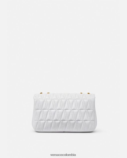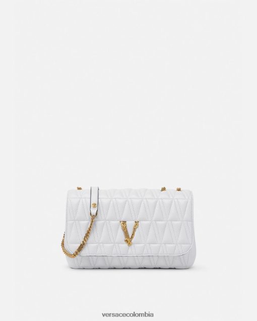 El bolso de hombro Virtus, que toma su nombre de la deidad romana de la virtud y el valor, está adornado con el emblemático herraje en forma de V barroco. Confeccionado con piel de cordero acolchada y flexible en forma de V, este elegante modelo presenta un forro con estampado barroco.