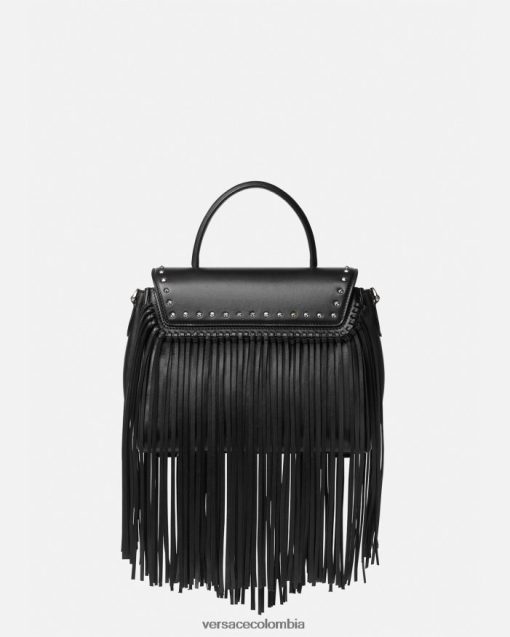 Elaborado en cuero granulado con una silueta estructurada, el bolso exclusivo está adornado con una placa de Medusa en la parte delantera y está revisado con flecos de cuero en cascada. Este estilo versátil se puede llevar en la mano o cruzado usando la cadena intercambiable y las correas de cuero para los hombros.