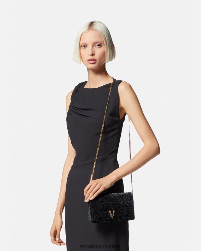 mujer bolso de mano virtus de terciopelo Versace negro 2RP40F378 bolsas