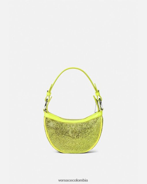 Una edición mini de la silueta hobo, el bolso de hombro repetido está adornado con cristales y ribetes de cuero. Un emblema de la Medusa adornado con cristales tonales acentúa el accesorio.