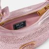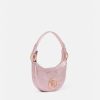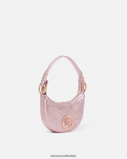 Una edición mini de la silueta hobo, el bolso de hombro repetido está adornado con cristales y ribetes de cuero. Un emblema de la Medusa adornado con cristales tonales acentúa el accesorio. dua lipa x versace es una cápsula de estilos diseñados en colaboración con dua lipa y presentados en la pasarela de cannes.
