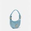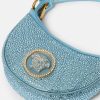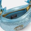 Una edición mini de la silueta hobo, el bolso de hombro repetido está adornado con cristales y ribetes de cuero. Un emblema de la Medusa adornado con cristales tonales acentúa el accesorio. dua lipa x versace es una cápsula de estilos diseñados en colaboración con dua lipa y presentados en la pasarela de cannes.