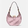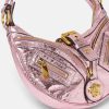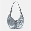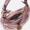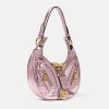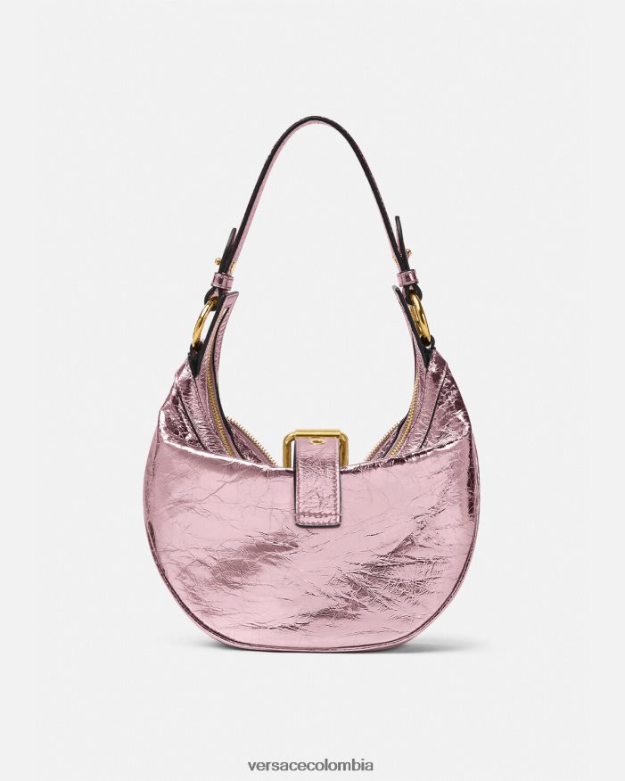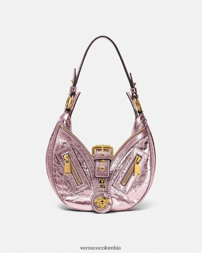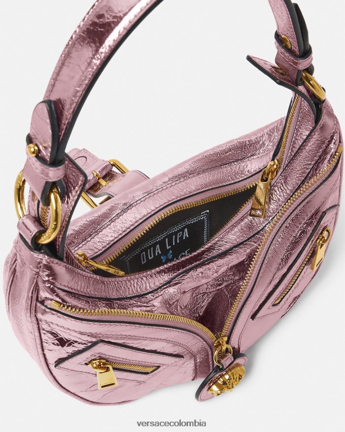 El bolso de hombro repetido, una reedición de una silueta hobo de archivo, está confeccionado en cuero metalizado arrugado con una correa para el hombro desmontable. De inspiración motera, un tirador con dije de medusa y cremalleras diagonales añaden una actitud grunge con un toque versace. Este artículo forma parte de la colección cápsula codiseñada con Dua Lipa.