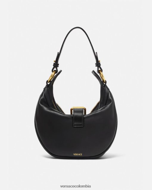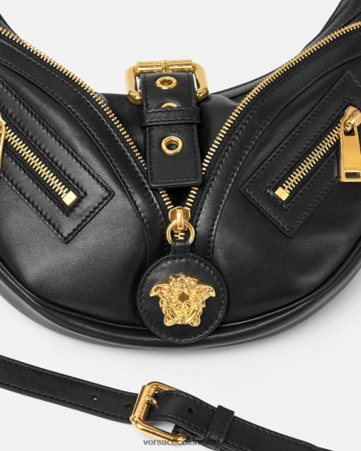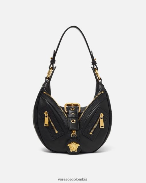 El bolso de hombro repetido, una reedición de una silueta hobo de archivo, está confeccionado en piel suave con una correa para el hombro desmontable. De inspiración motera, un tirador con dije de medusa y cremalleras diagonales añaden una actitud grunge con un toque versace. Este artículo forma parte de la colección cápsula codiseñada con Dua Lipa.