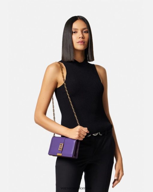 El minibolso Greca Goddess está realzado por la cadena Greca, un símbolo característico de Versace, construido a partir de una línea ininterrumpida. Elaborado en Italia con cuero liso, este bolso de noche se puede llevar como bolso de hombro o cruzado gracias a su correa de cadena desmontable.