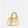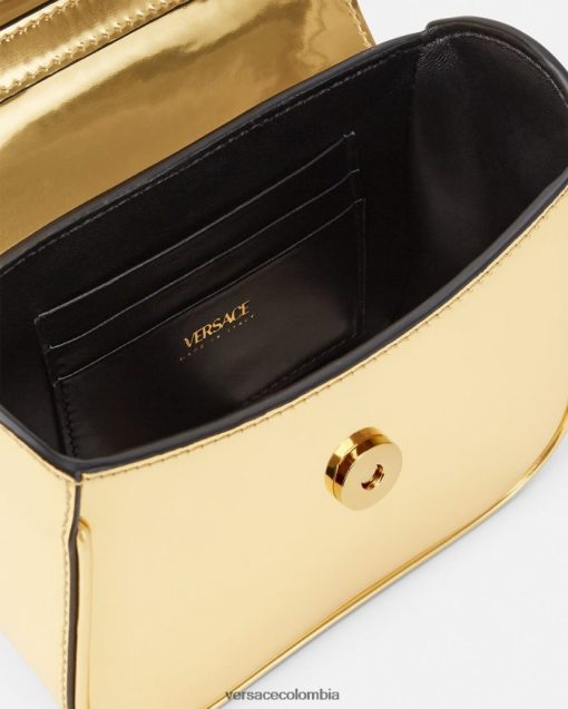 Elaborado en Italia con cuero brillante, este diseño presenta un asa superior de cadena rígida. Está adornado con una medusa central en tono dorado y cuenta con una correa para el hombro ajustable.