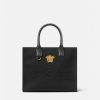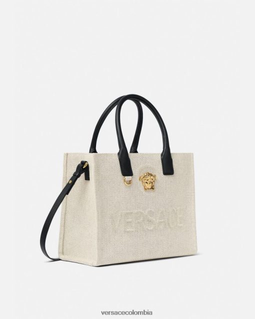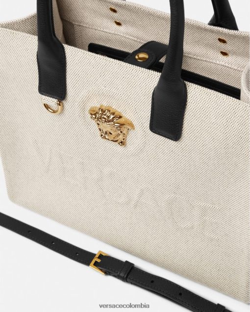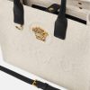 Este bolso tote de lona está adornado con una placa central de la medusa y un logo bordado en el mismo tono. las asas superiores rígidas están confeccionadas en cuero y el espacioso interior tiene dos bolsillos con cremallera y una correa protectora. El modelo viene con una correa para el hombro ajustable y desmontable.