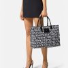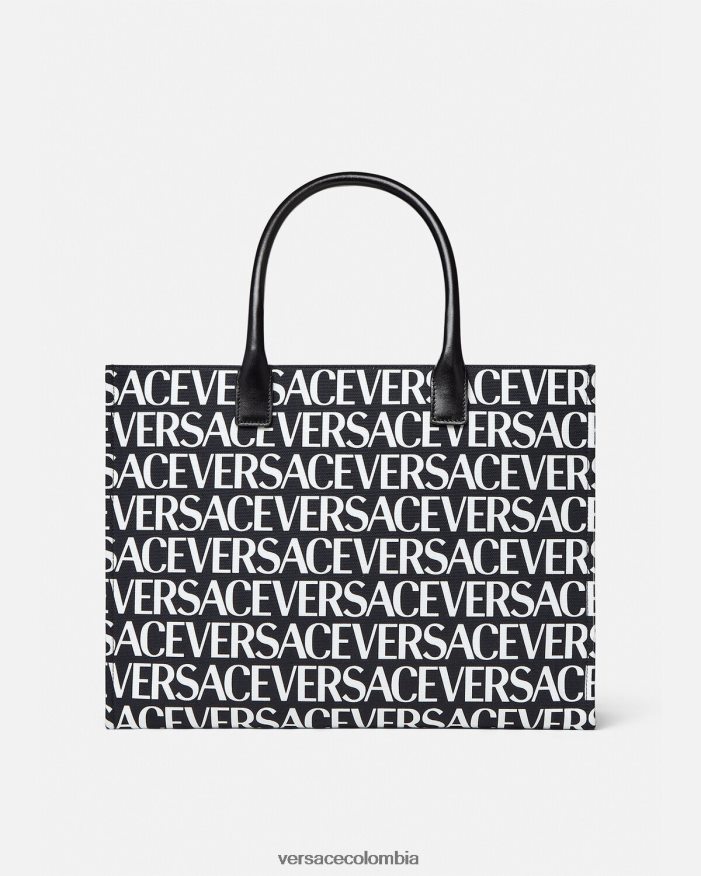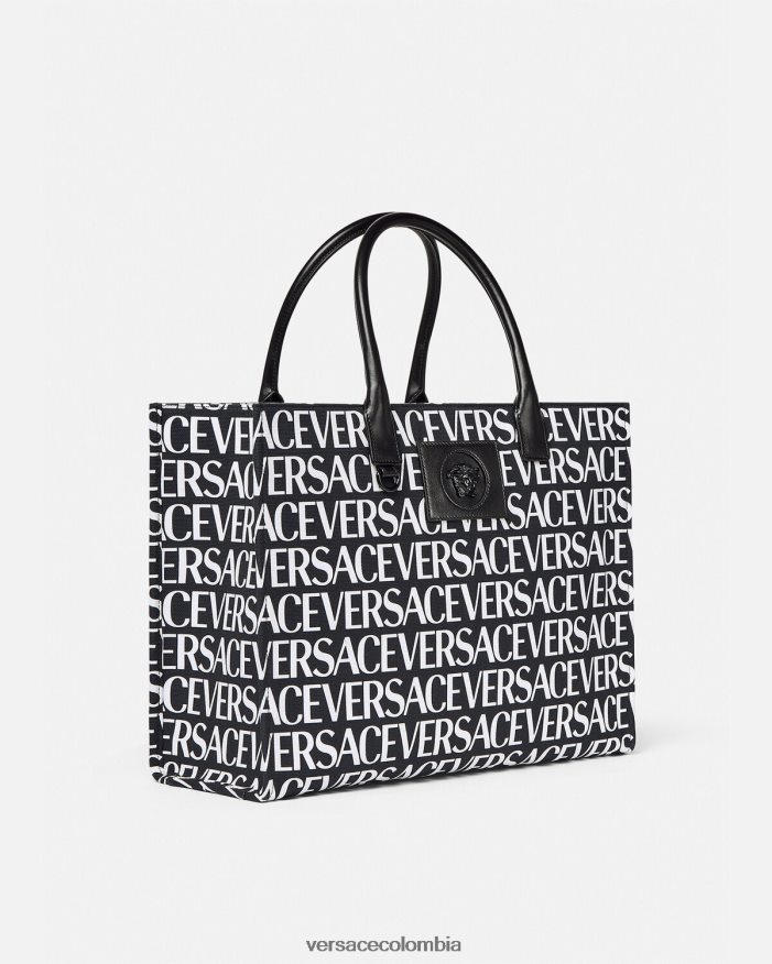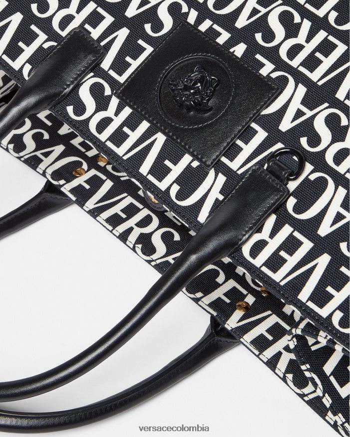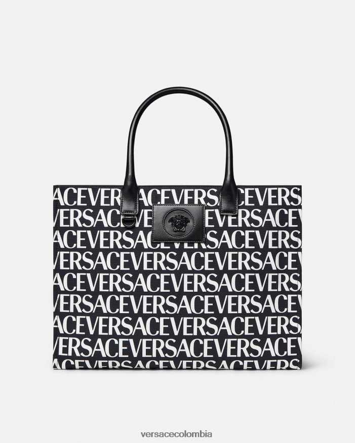 Este bolso tote de lona está adornado con una placa central de la medusa y un logotipo de Versace en contraste. las asas superiores rígidas están confeccionadas en cuero y el espacioso interior tiene un bolsillo con cremallera y una correa protectora.