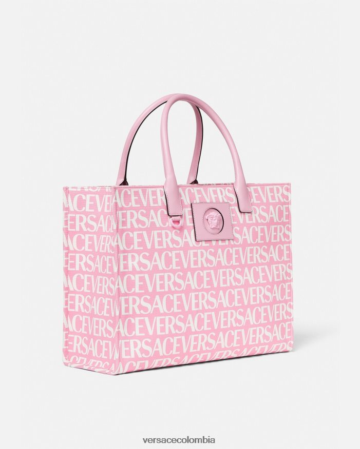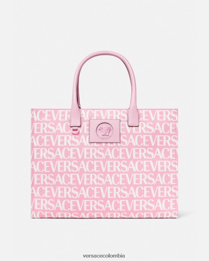 Este bolso tote de lona está adornado con una placa central de la medusa y un logotipo de Versace en contraste. las asas superiores rígidas están confeccionadas en cuero y el espacioso interior tiene un bolsillo con cremallera y una correa protectora.