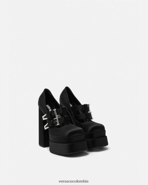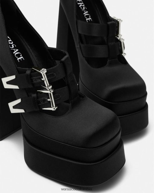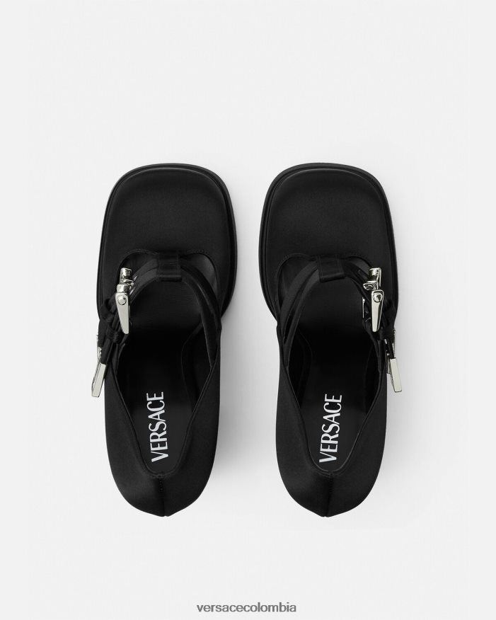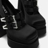 Estos zapatos de tacón inspirados en Mary Jane están colocados sobre una plataforma doble con un tacón alto en bloque y están acentuados por herrajes en forma de V en las correas superiores delanteras.