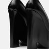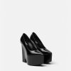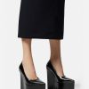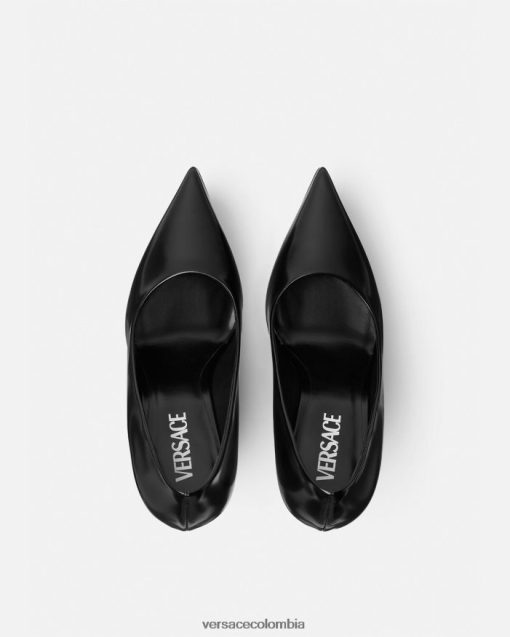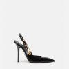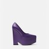 Estos llamativos zapatos de tacón de cuero con punta de Versace se definen por un tacón de plataforma con muescas en forma de onda.