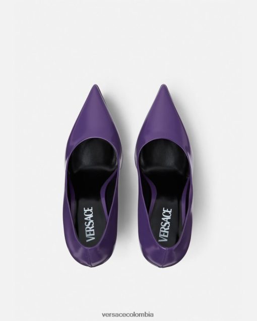 Estos llamativos zapatos de tacón de cuero con punta de Versace se definen por un tacón de plataforma con muescas en forma de onda.
