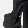 Favorecidos por Donatella Versace, estos botines cuentan con un tacón alto en bloque y una plataforma doble. Confeccionados en piel de becerro flexible, el par está acentuado por una cremallera de Medusa distintiva en los laterales.
