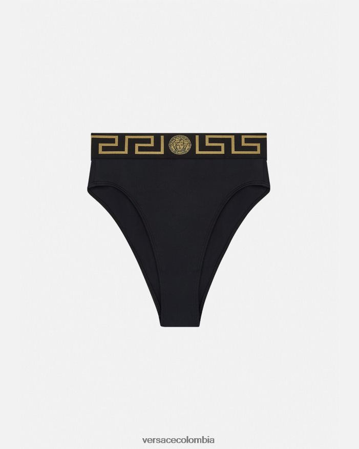 Estas braguitas de bikini de pierna alta tienen un ajuste de cintura alta y cuentan con el característico borde de greca y medusa en la cinturilla elástica. Se pueden combinar con los tops a juego.