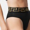 Estas braguitas de bikini de pierna alta tienen un ajuste de cintura alta y cuentan con el característico borde de greca y medusa en la cinturilla elástica. Se pueden combinar con los tops a juego.